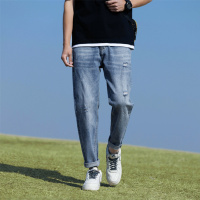 浅蓝破洞锥形牛仔裤男卷边裤日系cityboy风百搭休闲男长裤