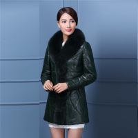 真皮皮衣女中长款羽绒服绵羊皮立领长袖大码黑色CYDDWQE