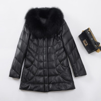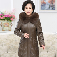 中老年真皮皮衣女妈妈款真皮羽绒服中长款外套加肥加大码