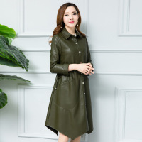 秋季衬衣领单排扣中长款皮衣外套女纯色修身水洗皮衣大码女装