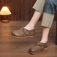 头层牛皮单鞋女2026春季新款圆头透气复古平底软底百搭真皮休闲鞋