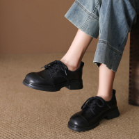 头层牛皮单鞋女2026春季新款圆头粗跟复古英伦风系带小皮鞋乐福鞋