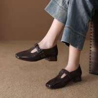 头层牛皮单鞋女2026春季新款复古平底圆头透气百搭舒适勃肯鞋外穿_639
