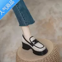 SUNTEK乐福鞋夏季新款复古白色厚底粗跟内增高一脚蹬圆头英伦风小皮鞋女