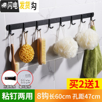 三维工匠免打孔黑色北欧风挂衣钩不锈钢挂钩试衣间卫生间衣帽钩厨房排钩 雅黑方钩8钩粘钉两用(买二送一