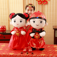 结婚玩偶压床娃娃一对创意毛绒玩具情侣公仔金童玉女布娃娃中国红