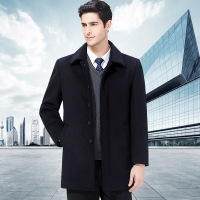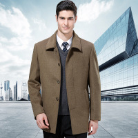 【免费试穿,30天退换】秋新款中年翻领毛呢大衣男士中长款加绒加厚大码中年爸爸装风衣自营