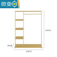 敬平室内简易晾衣架挂衣架落地卧室单杆式衣帽架衣服架子多功能收纳架 带上板纳米金长120宽40高155