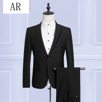 AR2018新款西服套装新郎礼服西装春季韩版正装男士结婚修身伴郎装职业装男黑色