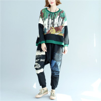 YIBUSHENG大码女装连衣裙季宽松加肥200斤短袖t恤裙卡通慵懒气质长裙