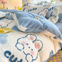 美帮汇冬季珊瑚绒四件套双面加厚保暖被套床单牛奶绒法兰绒冬天床品套件
