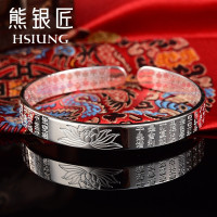 熊银匠银手镯女999纯银荷花女镯子六字箴言莲花心经手环佛教经文