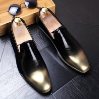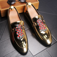 男士尖头皮鞋韩版时尚内增高休闲男鞋亮面刺绣发型师透气豆豆鞋男