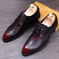 鳄鱼纹正装休闲皮鞋男真皮英伦尖头内增高婚鞋青年发型师潮男鞋子
