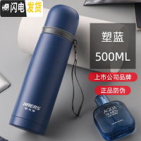 三维工匠保温杯500 男女士304不锈钢子 学生儿童便携运动水杯 磨砂蓝