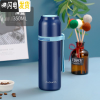 三维工匠保温杯女士时尚便携小巧大容量316不锈钢可爱学生简约水杯子 350深蓝太阳