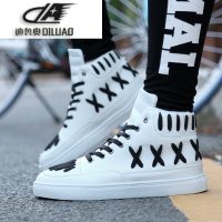 手绘高帮鞋街舞鞋潮男鞋子个性高帮鞋男图腾高腰鬼步青少年高邦鞋