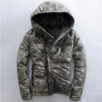 冬装潮牌流行青年韩版男装斜拉链加厚保暖连帽真皮羽绒服