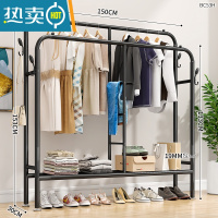 敬平简易晾衣架卧室落地衣架折叠室内挂衣架阳台凉晒衣架衣服收纳架子 150CM黑色[挂裤架+双层网] 中