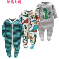 锦铭七玥婴儿衣服春长袖连体衣新生儿宝宝打底衣包脚条纹爬服睡衣恐龙