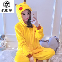 皮卡丘卡通连体恐龙睡衣女男加厚法兰绒秋冬成人动物家居服珊瑚绒