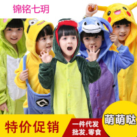 锦铭七玥儿童卡通连体睡衣动物恐龙皮卡丘秋冬季宝宝女童法兰绒男大童老虎