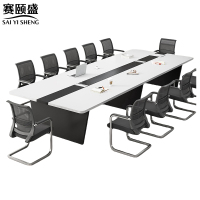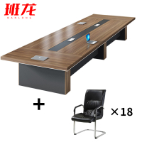 质凡大型会议桌子长条桌会议洽谈桌椅 4.5米会议桌+16把椅子