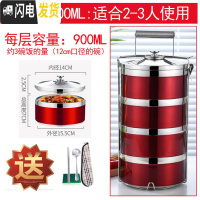 三维工匠炫彩304不锈钢多层保温饭盒组合密封食格提篮学生成人便携提锅 16cm四层红色+两件套+百洁布