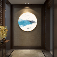 现代新中式水墨山水画国画客厅装饰画实木圆形别墅餐厅挂画玄关画
