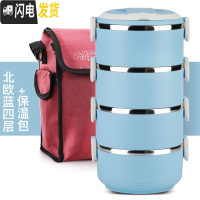 三维工匠不锈钢保温饭盒3层配包圆桶包保温桶餐盒密封饭盒学生便当盒 北欧蓝4层+保温包