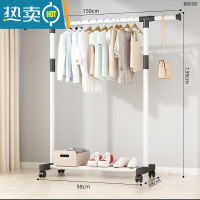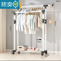 敬平简易晾衣架落地卧室内伸缩折叠家用挂衣服的架子阳台凉晒被子器 135CM白色[双杆]+[可伸缩]+万向轮 大