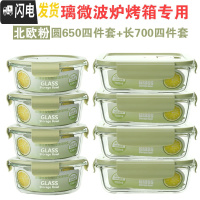 三维工匠耐热玻璃饭盒大容量套装微波炉专用保鲜盒带盖密封收纳碗便当盒 北欧绿8件套
