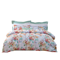 富安娜 纯棉四件套 被套+床单+枕套*2 203*229cm 花意轻尘
