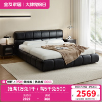 全友家居皮艺床头层牛皮真皮大床卧室家具意式极简轻奢软包双人床