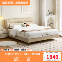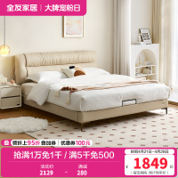全友家居主卧室皮艺床奶油风软包床头双人床