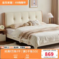 全友家居新中式卧室生态科技皮舒适软靠床屏橡胶木板木床双人床