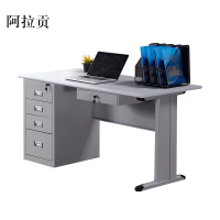 阿拉贡不锈钢桌办公桌车间工作桌带锁抽屉电脑桌201五斗一空1.4米