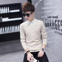 法国啄木鸟2016秋装男薄款烫钻羊毛衫 时尚修身男装圆领打底毛衣套头潮