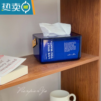 敬平ins北欧设计感抽纸盒创意简约家用手提现代纸巾盒 手提透明蓝纸巾盒