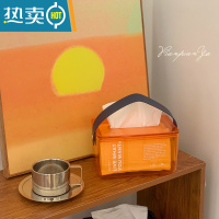 敬平ins北欧设计感抽纸盒创意简约家用手提现代纸巾盒 手提透明橙纸巾盒