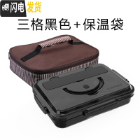三维工匠 304不锈钢饭盒便携带盖分格便当盒成人学生女韩国餐盒 3格黑色经典+保温袋