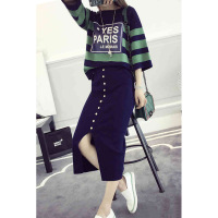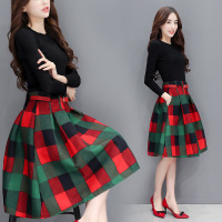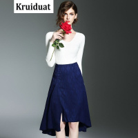 Kruidvat欧洲站套装女2017春季新款修身长袖针织衫+不规则提花A字裙两件套B076