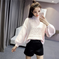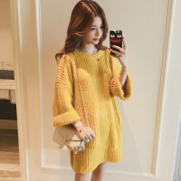 珂依舍2017秋装新款2017秋冬新款韩版马海毛袖中长款套头宽松灯笼袖毛衣针织衫女