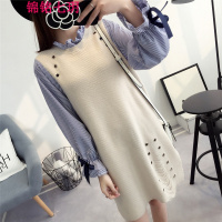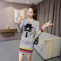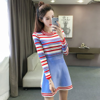 普美思 针织衫女2017秋季新款韩版中长款螺纹长袖套头打底毛衣裙子
