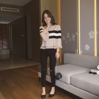 秋季韩版新款时尚显瘦毛衣针织衫上衣+休闲破洞九分铅笔裤套装女