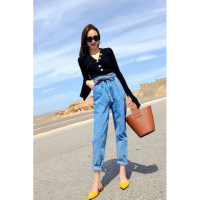 时尚套装秋冬毛衣针织衫女+小脚高弹牛仔裤时尚套装两件套