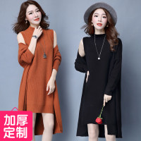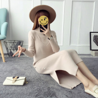 秋冬毛衣两件套时尚毛线裙套装女冬中长款针织连衣裙线衣开衫外套