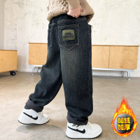 男童加绒牛仔裤宽松阔腿裤保暖年新款中大童韩版直筒休闲裤潮