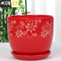 三维工匠中国风大红色陶瓷花盆批发有孔/喜庆花盆纯红个性创意花盆/免邮 红色//161 20-22cm花盆容器