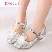 锦铭七玥儿童灰姑娘水晶鞋2018秋款韩版时尚中大童表演高跟公主舞蹈皮鞋